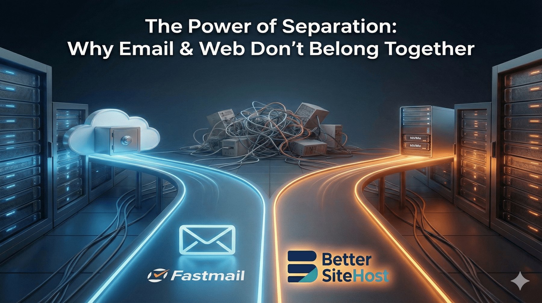 This is a huge headache. If your site is down, you need your email to stay in touch with support or get alerts about the problem. Keeping them separate ensures that even if your website is having a bad day, your inbox stays open and your digital life keeps moving.